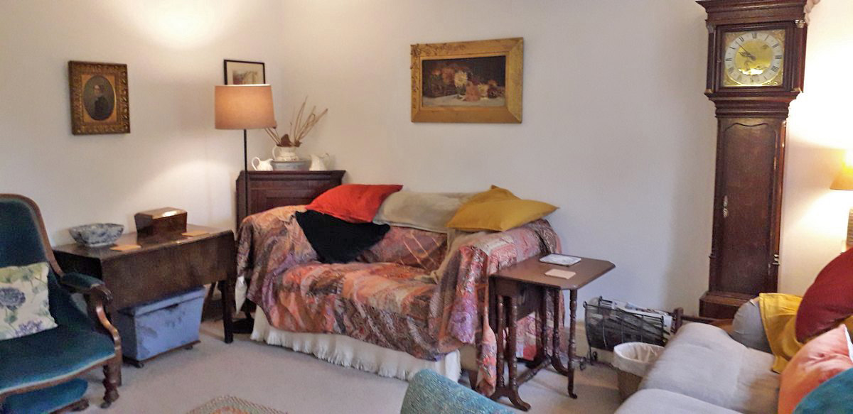 The sitting room is off the hall and has a multi-fuel wood burner which we provide all fuel for. Comfortable sofas and chairs make it a really cosy and attractive room with a tasteful atmosphere. It has a grandmother clock and works of art collected by the family over many years hang on the walls. It is fully carpeted with a large colourful rug. There is a flat screen tv, a dvd player and a good selection of dvds as well as a digital radio/CD player and secure wifi (with super fast broadband).